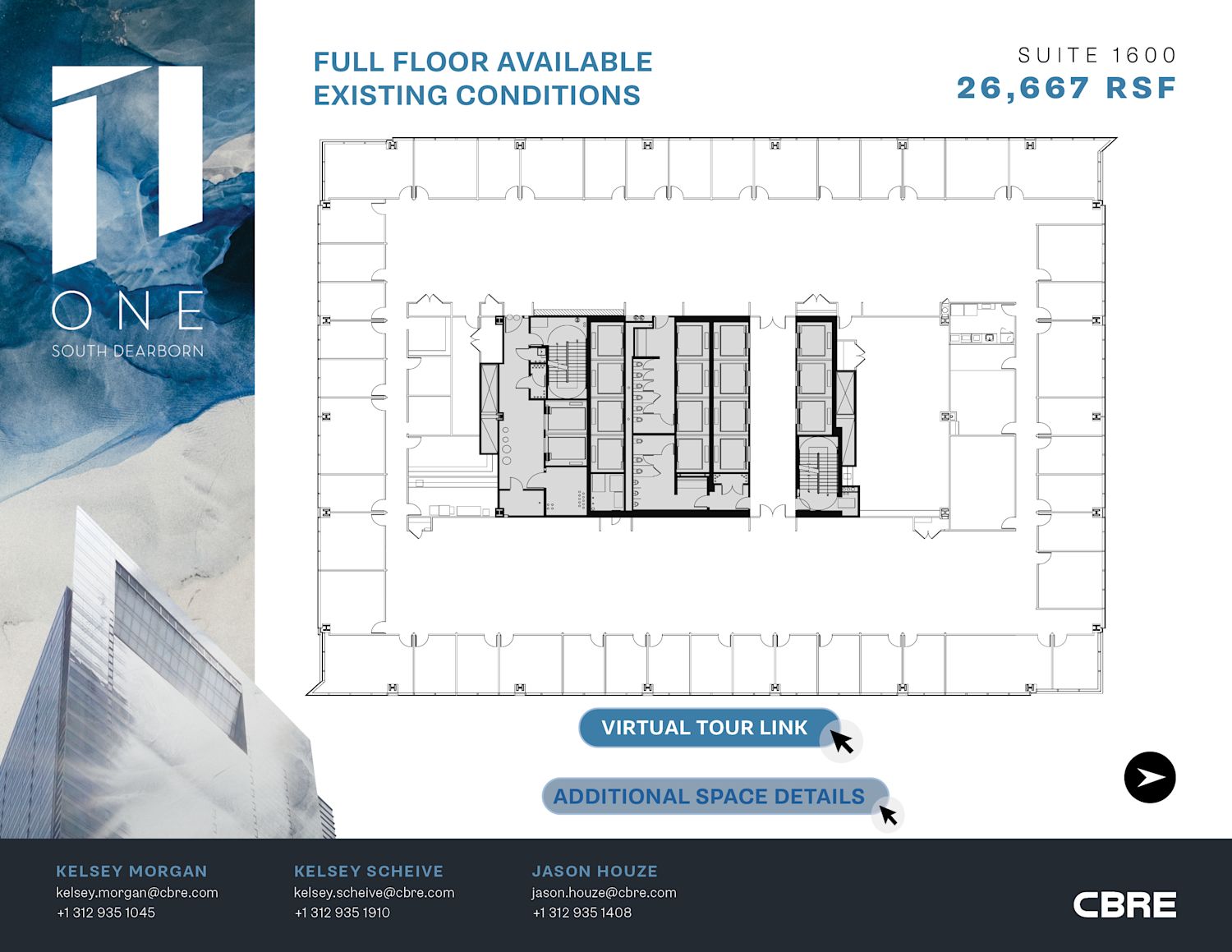 One South Dearborn is a 40-story, world-class office tower located at the southeast corner of Dearborn Street and Madison Street in downtown Chicago. The office building consists of 829,000 square feet of office space sitting on top of a 4-level, above-grade parking garage and the building’s ground-level Main Lobby which includes a white-table restaurant.